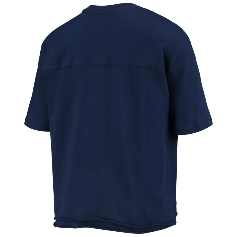The Junk Food Navy Washington Wizards Gradient Crop Top is the perfect way to show your support for the Washington Wizards. This stylish top features a crew neck, cropped hem, and distressed screen print graphics that will make you stand out from the crowd. The faux layered bottom with unfinished hem adds a touch of edge, while the flatlock stitching details ensure a comfortable fit. Made from soft cotton, this top is perfect for game day or any day you want to show your Wizards pride.